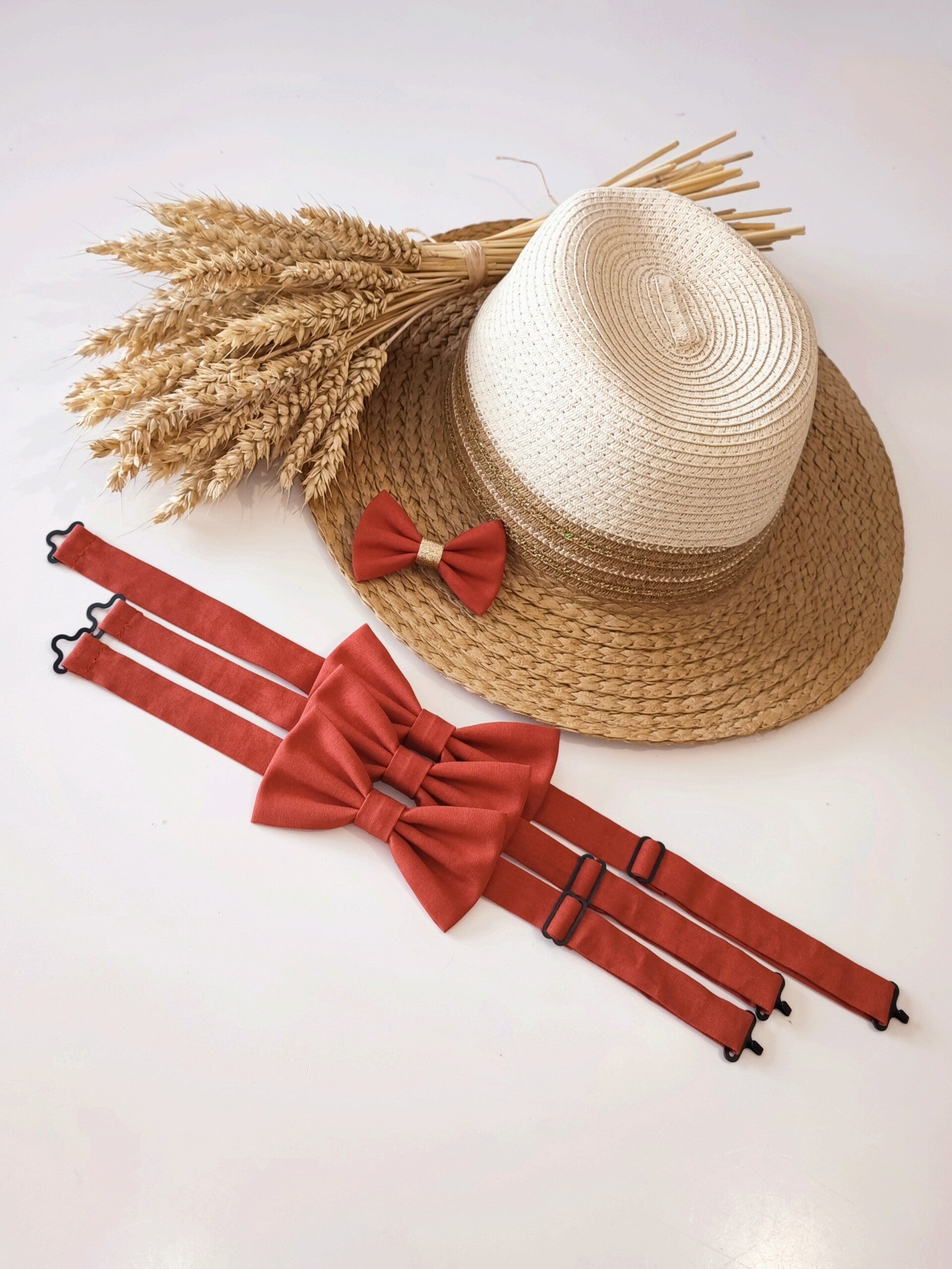 Lot de 3 nœuds papillon terracotta +