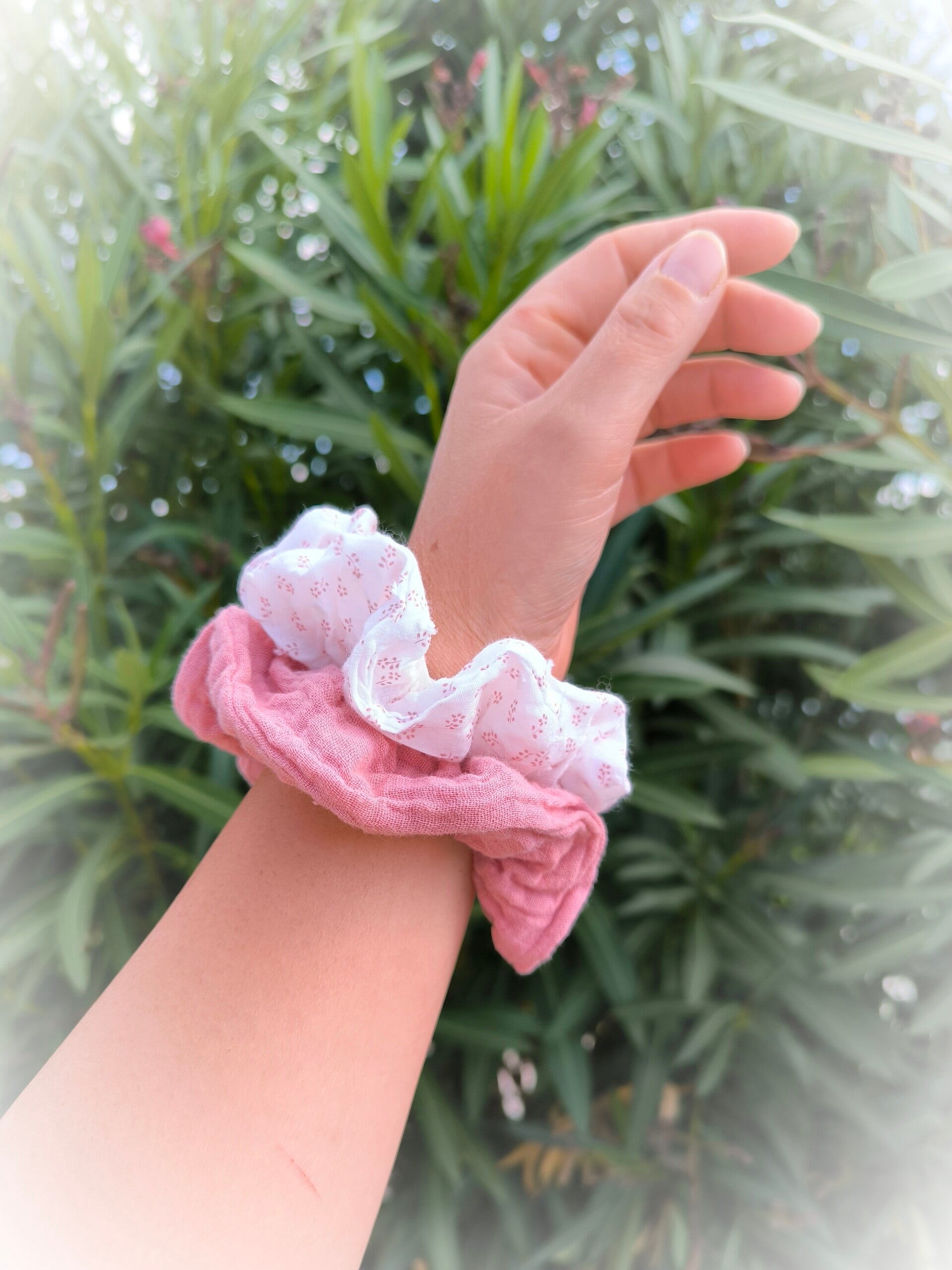Chouchou fleurs rose plumetis